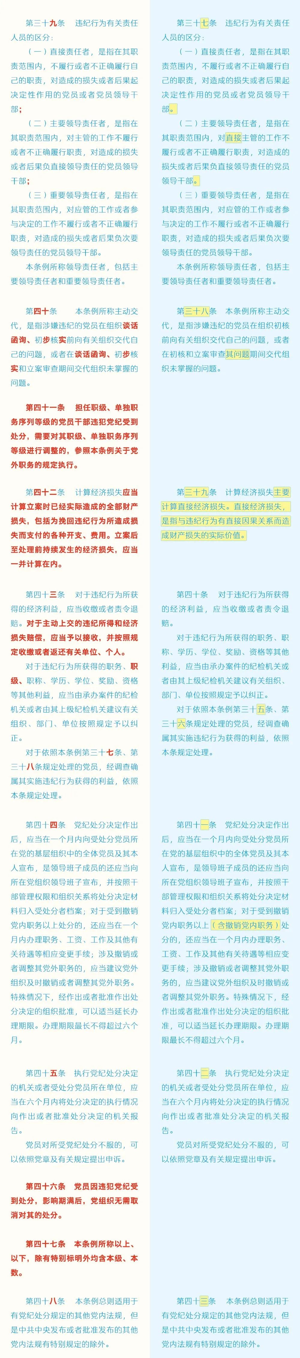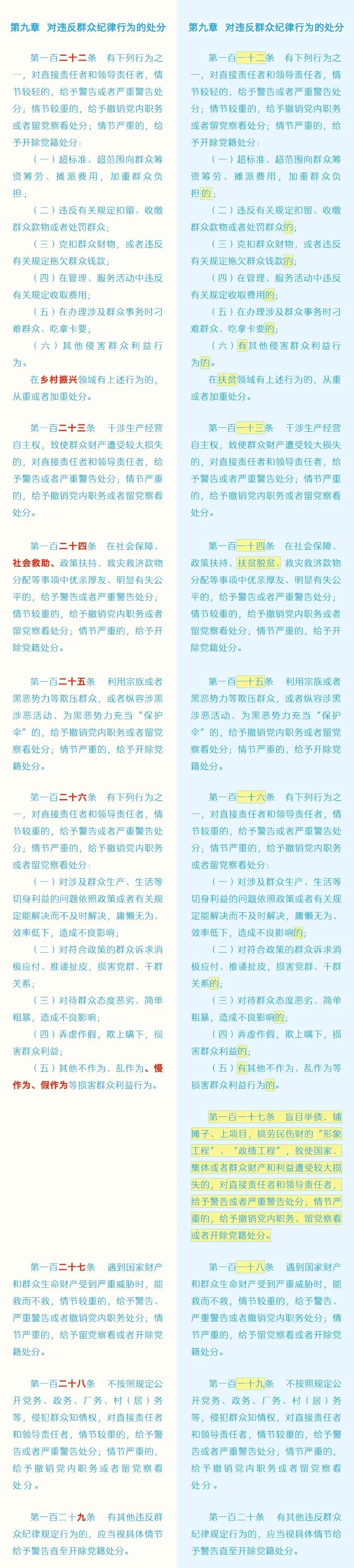 近日,中共中央印發了修訂后的《中國共產黨紀律處分條例》(以下簡稱《條例》),并發出通知,要求各地區各部門認真遵照執行。為幫助大家更好學習理解,本文對《條例》已修訂內容與原內容進行對照解讀。